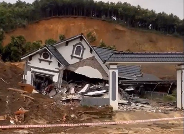 Ngôi nhà kiên cố của gia đình chị T. đã bị hàng ngàn khối đất đá đổ ập xuống và vùi lấp trong đêm tối. Một chi tiết may mắn trong vụ việc là 2 con nhỏ khác của chị T. đã tránh được nạn vì đã sang nhà ông bà ngoại để ngủ.